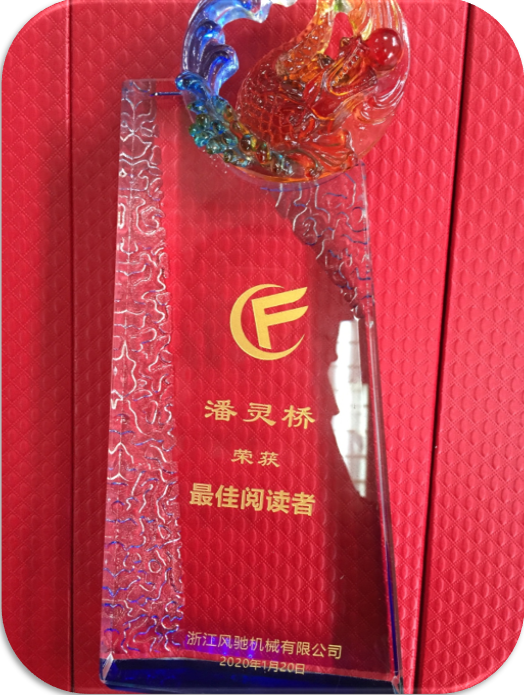 通過對四個季度最佳及優(yōu)秀心得匯總,經(jīng)公司領(lǐng)導(dǎo)層最終評選生產(chǎn)部潘靈橋為2019年度“最佳閱讀者”,并授予該榮譽(yù)獎杯。